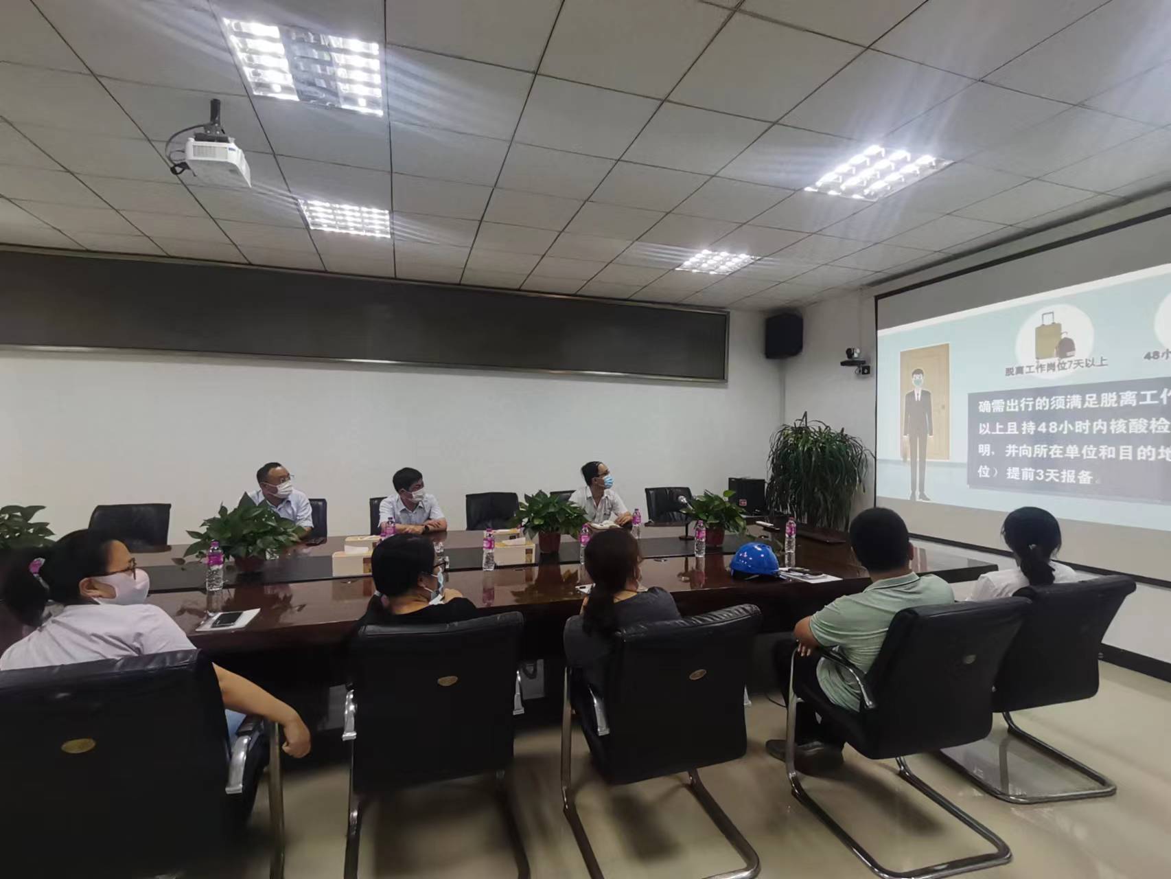 近日石岛管理区疫情防控对接部门领导来公司组织召开疫情防控宣传,为了保障各企业新冠肺炎疫情防控做到无死角、不断档,结合《全面做好新冠肺炎疫情常态化防控工作方案(第九版)》、《山东省新冠肺炎本土疫情处置方案(第五版)》等文件精神进行了防控宣传。